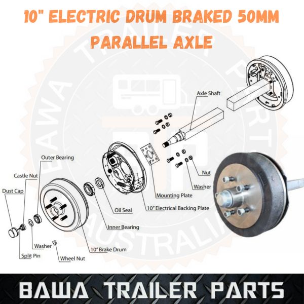 10 inch Electric Drum Braked 50mm square Parallel Axle Assembled