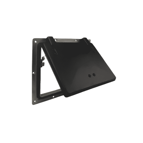 - Aluminum frame with rubber seal to resist dust and water when closed