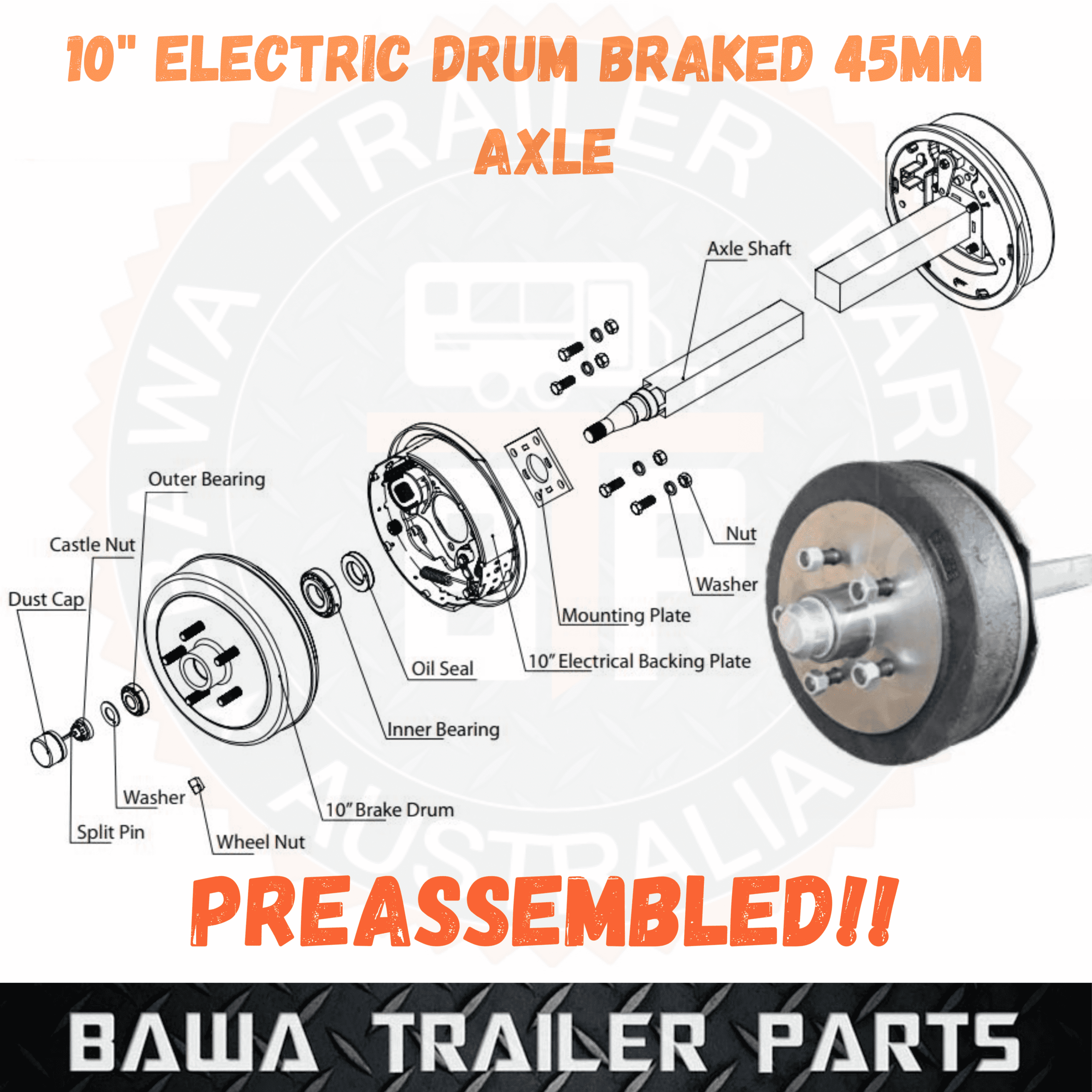10″ FORD Electric Drum Braked 45 Square Axle (1730mm HF to HF)