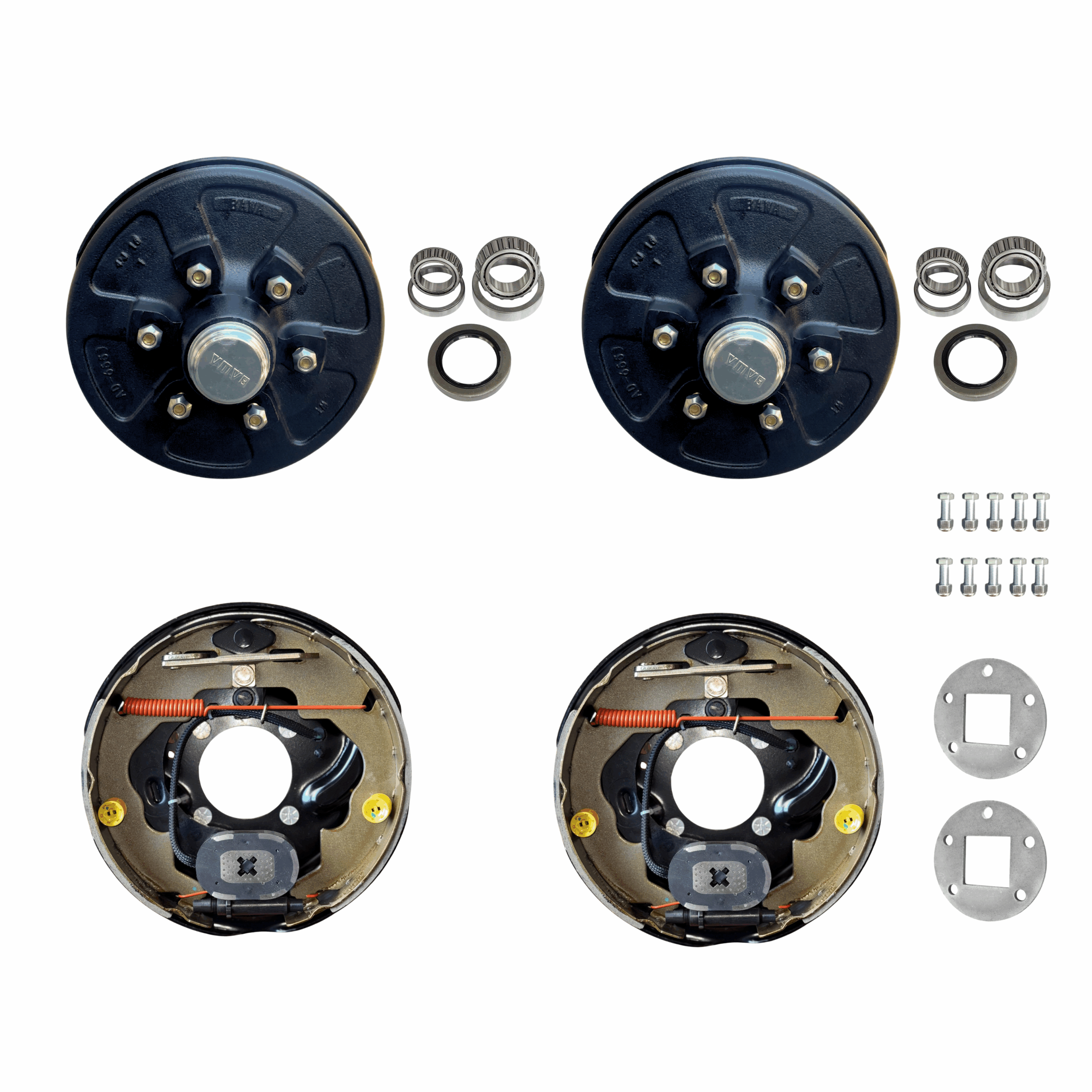 Our 12″ Heavy Duty Electric Drum Brake kit comes complete with 10″ drums, bearings, brakes and your options of weldable flanges. This is the perfect kit to replace or upgrade your current brake set-up.