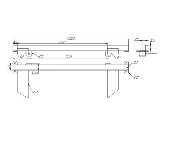 1 X Single Axle Galvanized Mounting Rail To Suit 13” Wheels