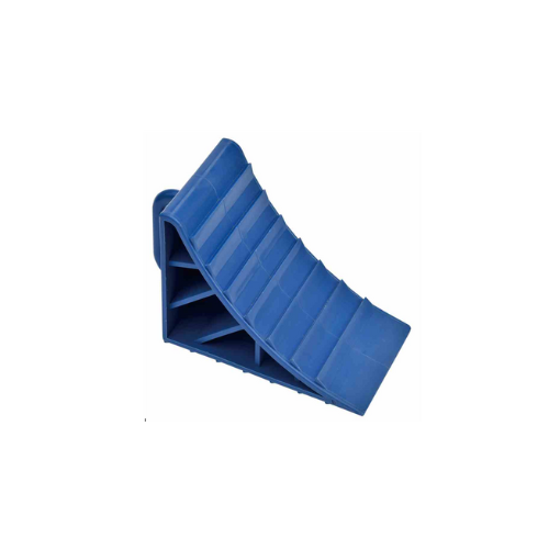 Lightweight, weather-resistant block designed to secure vehicle wheels, preventing movement during parking or maintenance, ideal for trailers, cars, and light-duty applications.