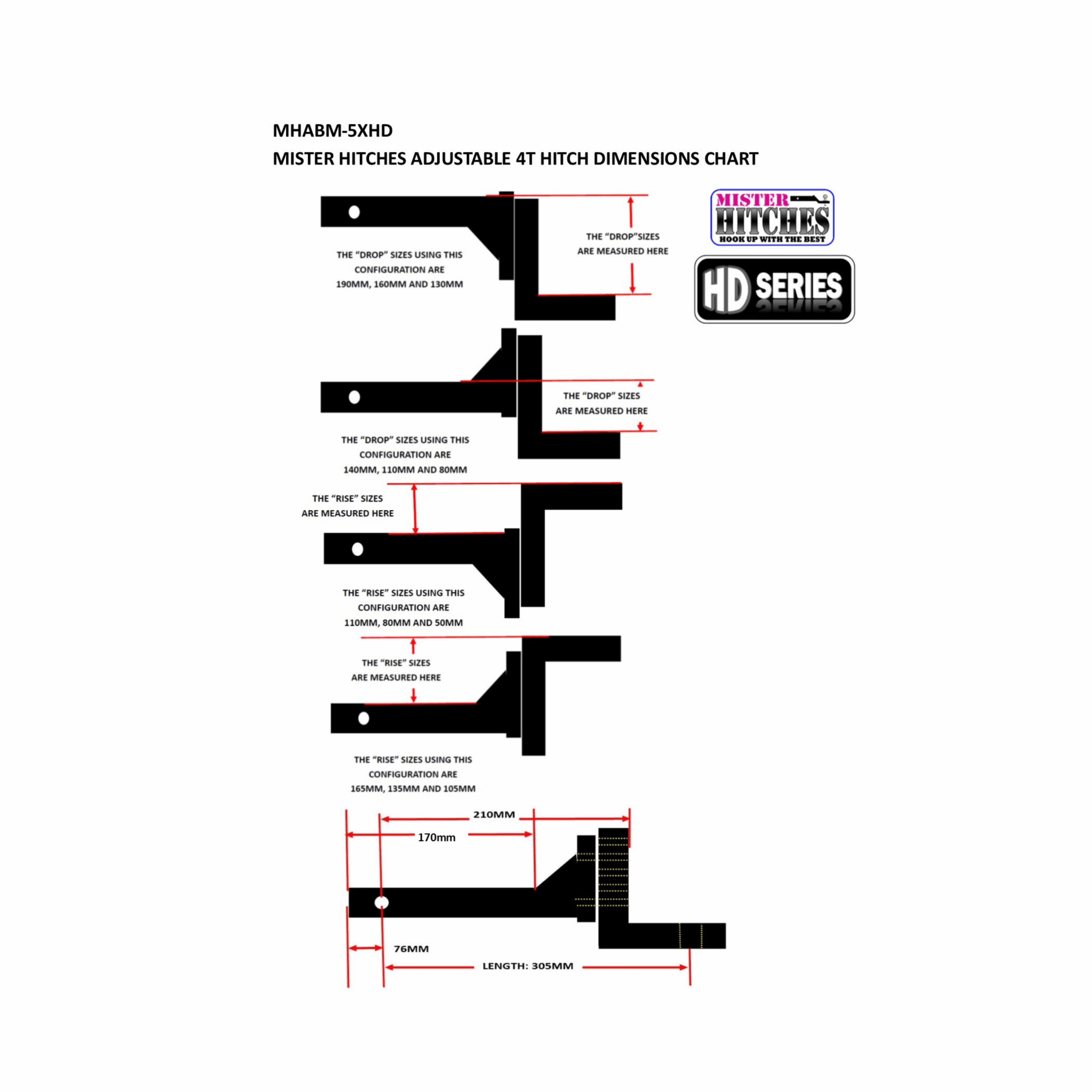 1 x 4T Heavy Duty Adjustable Tow Bar Tongue