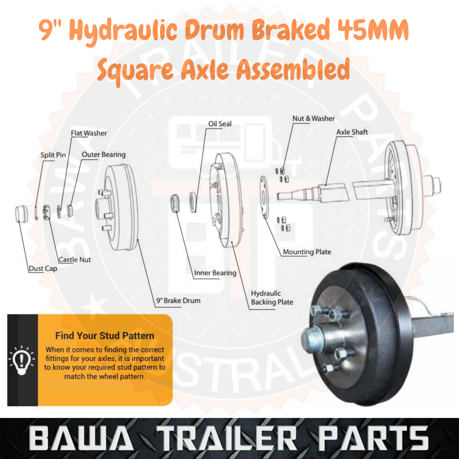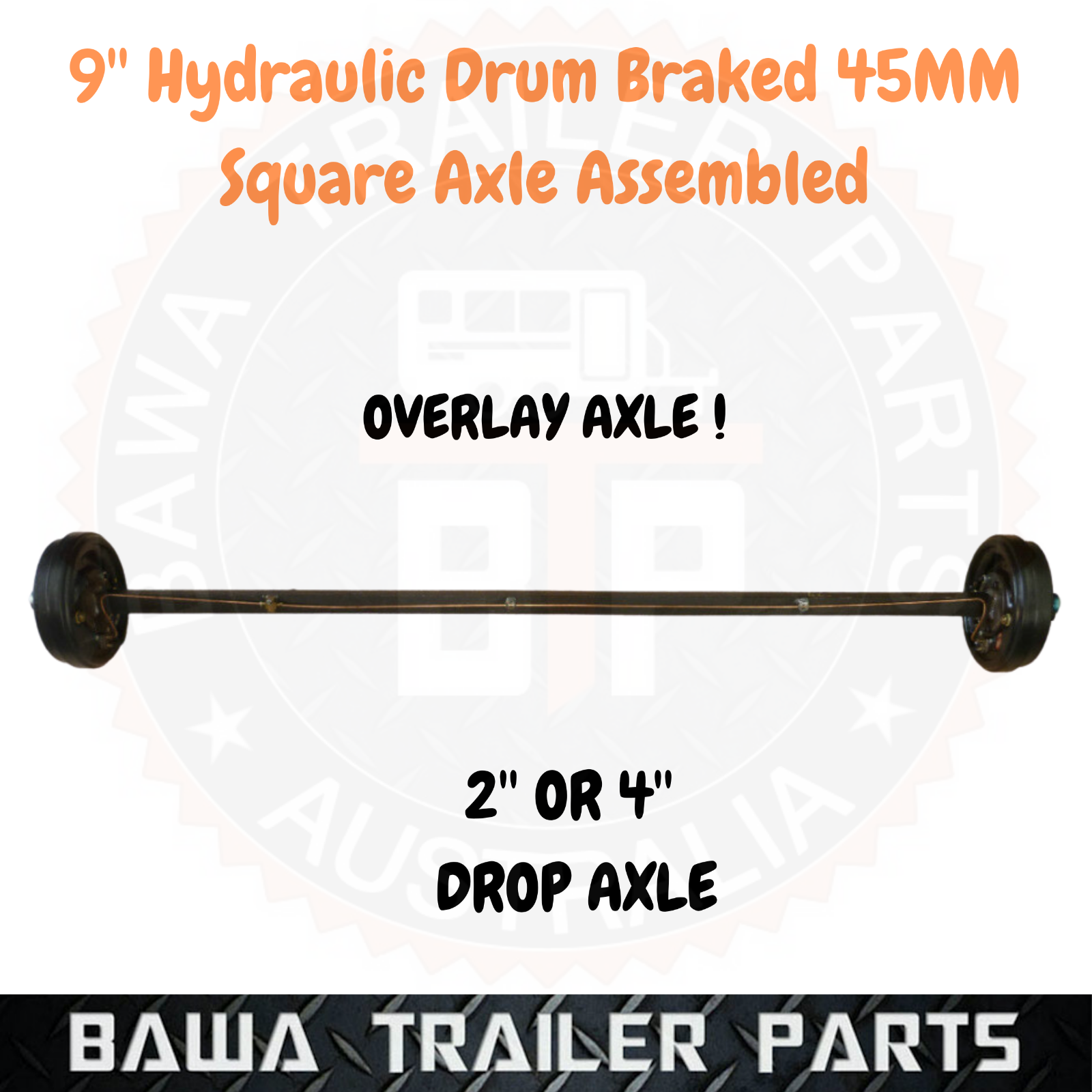 45mm Square AXLE ASSEMBLED WITH 9” Hydraulic Drum BRAKES