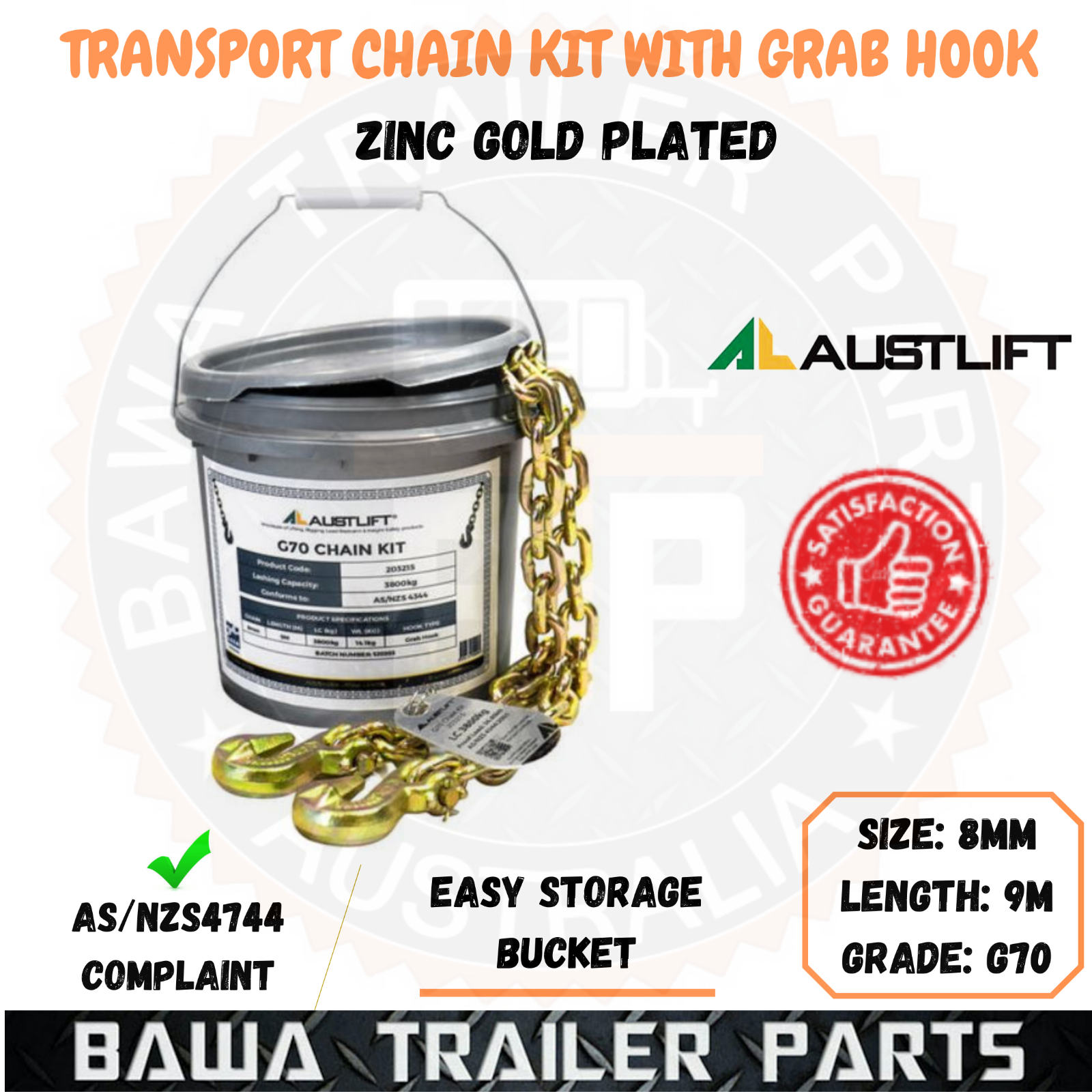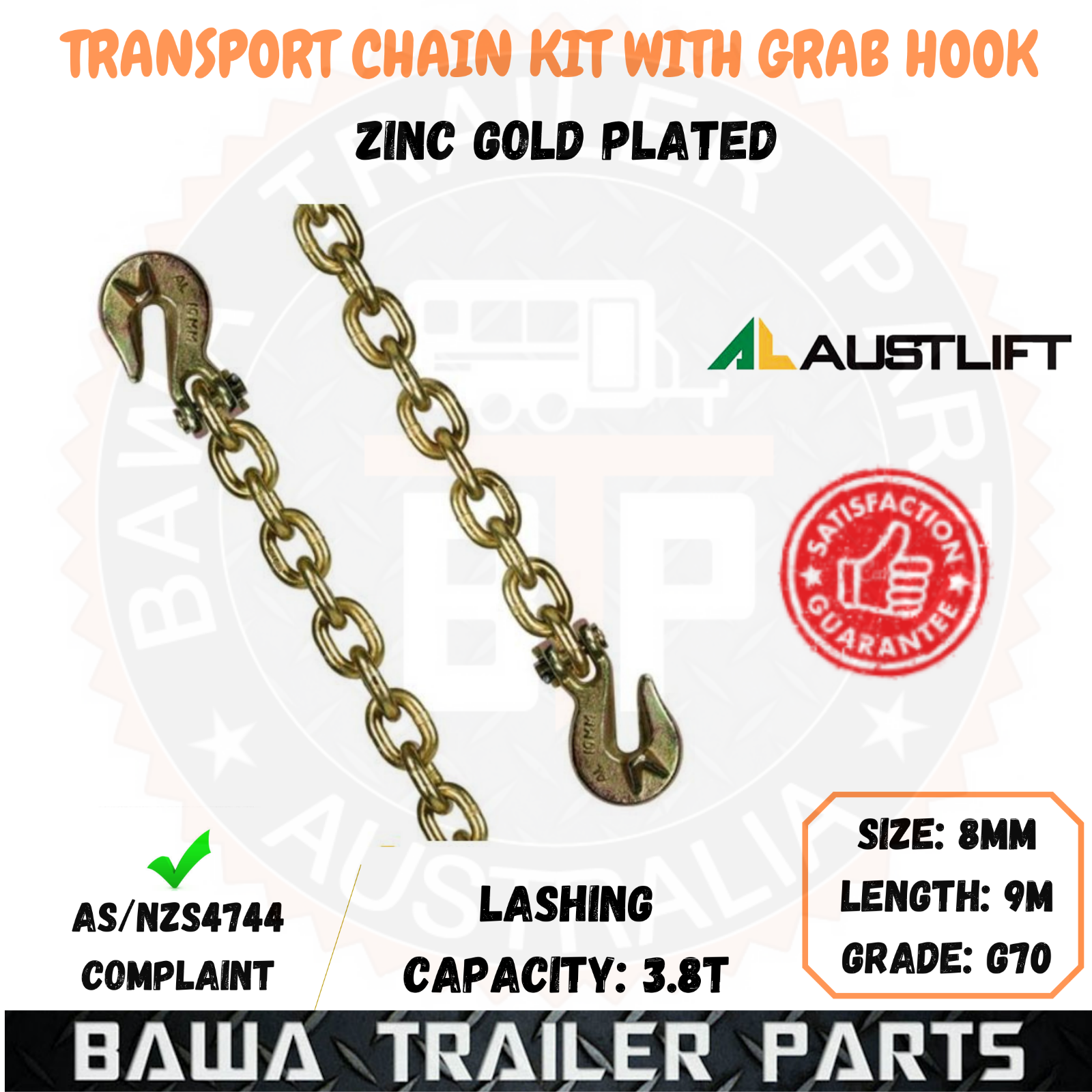 9M x G70 8MM TRANSPORT CHAIN KIT GRAB HOOKS 3.8T AUSTLIFT TIE-DOWN LOAD RESTRAINT