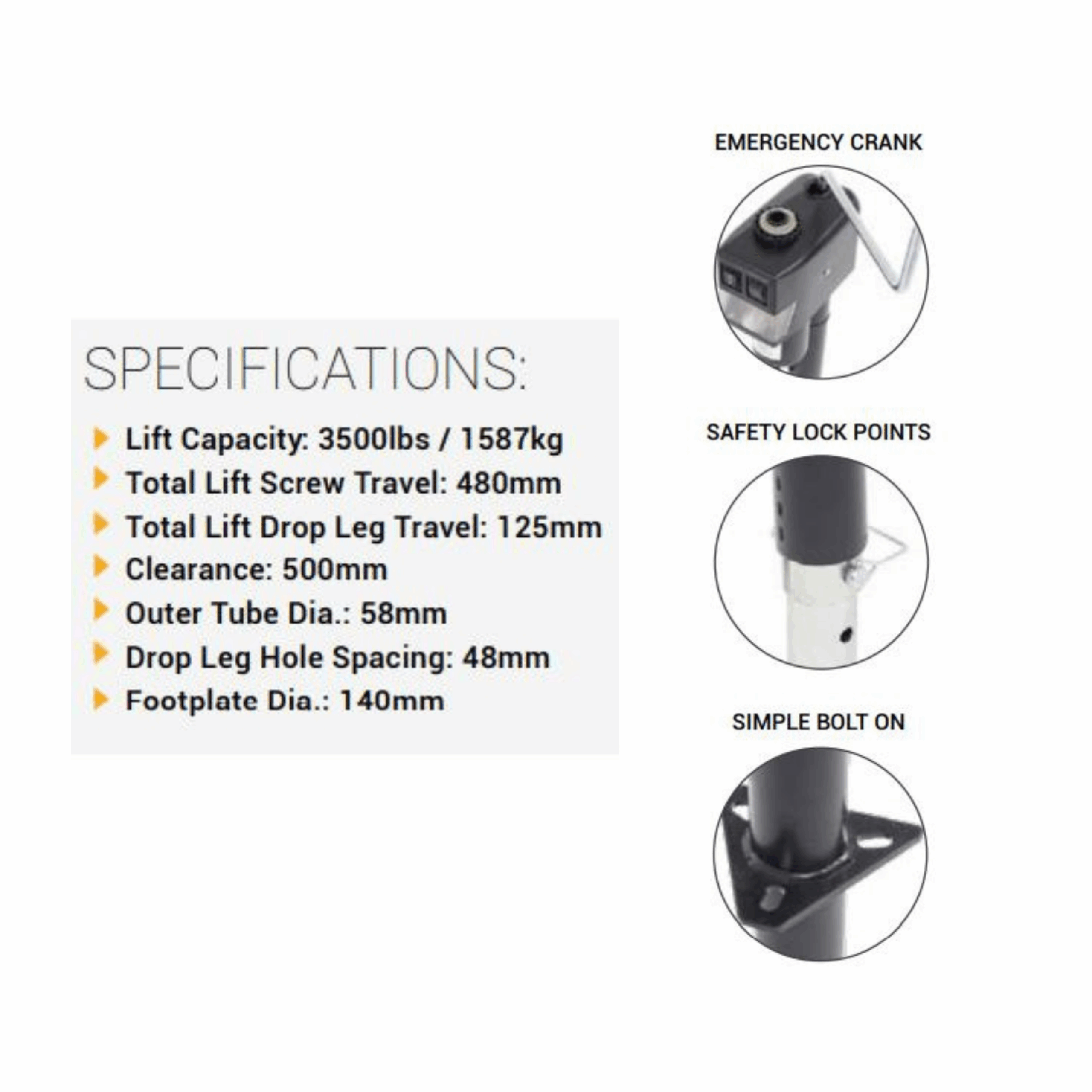 1 x Electric Jack Stand Wheel 12v 1587kg