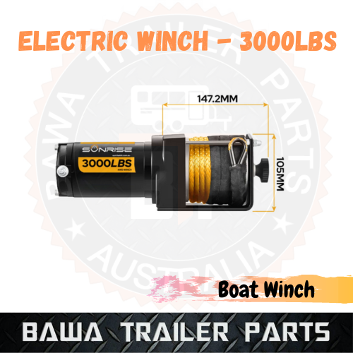 Experience power and convenience with Sunrise’s 3000LBS Electric Trailer Winch. Featuring a wireless remote for safe operation, a robust synthetic rope, and innovative clutch system, it ensures reliability in every use.