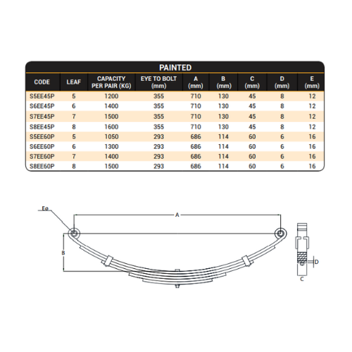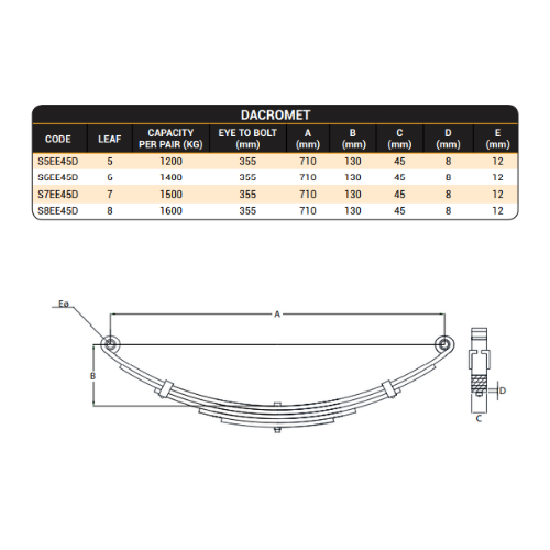 Eye to Eye Shackle Springs 45mmx8mm Dacromet