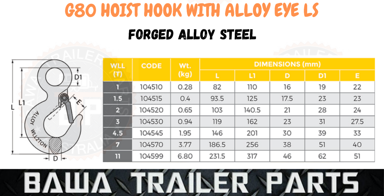 1 x G80 Alloy Hoist Hook LS Type