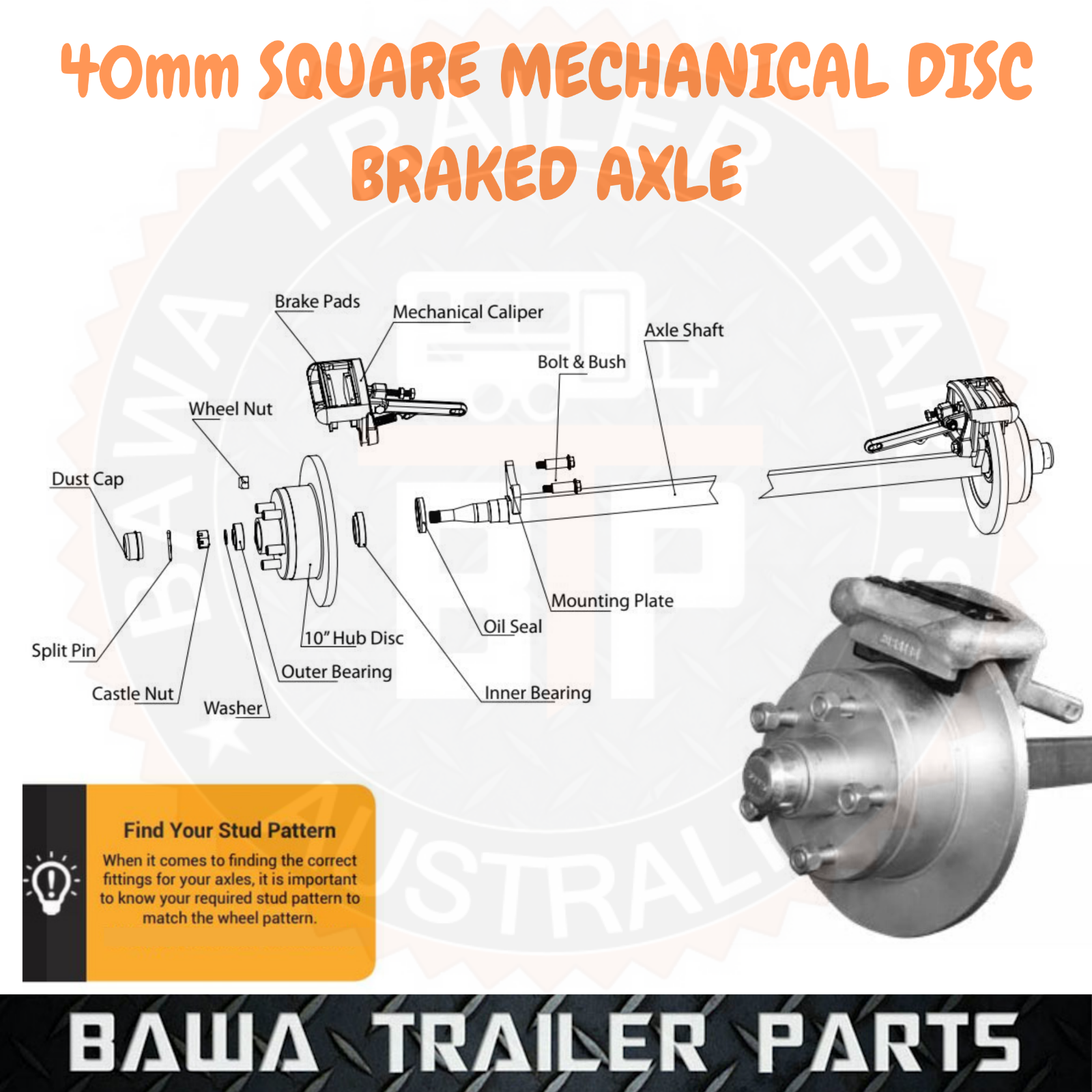 Mechanical Disc Braked 40mm Square Axle Assembled