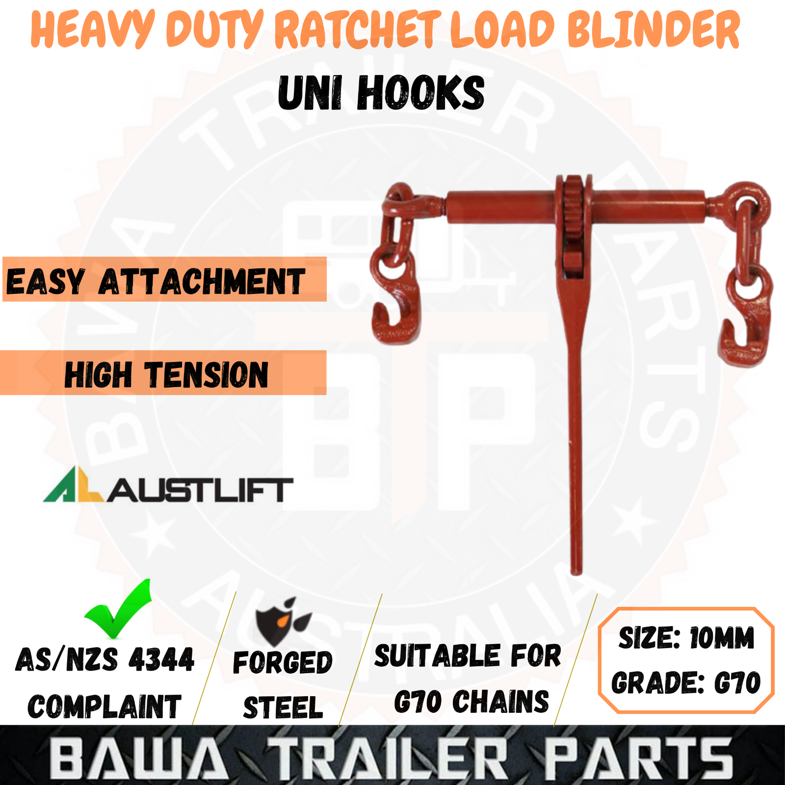 1 x Heavy Duty Load Blinder 10mm Ratchet Uni Hook