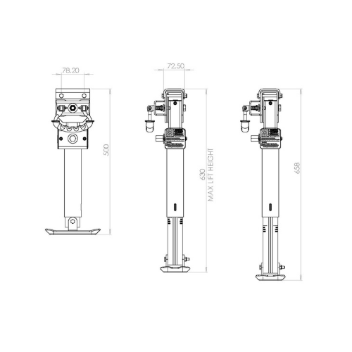 1 x XO Series Corner Steady – Drop Down Jack Zinc Finish – 650mm