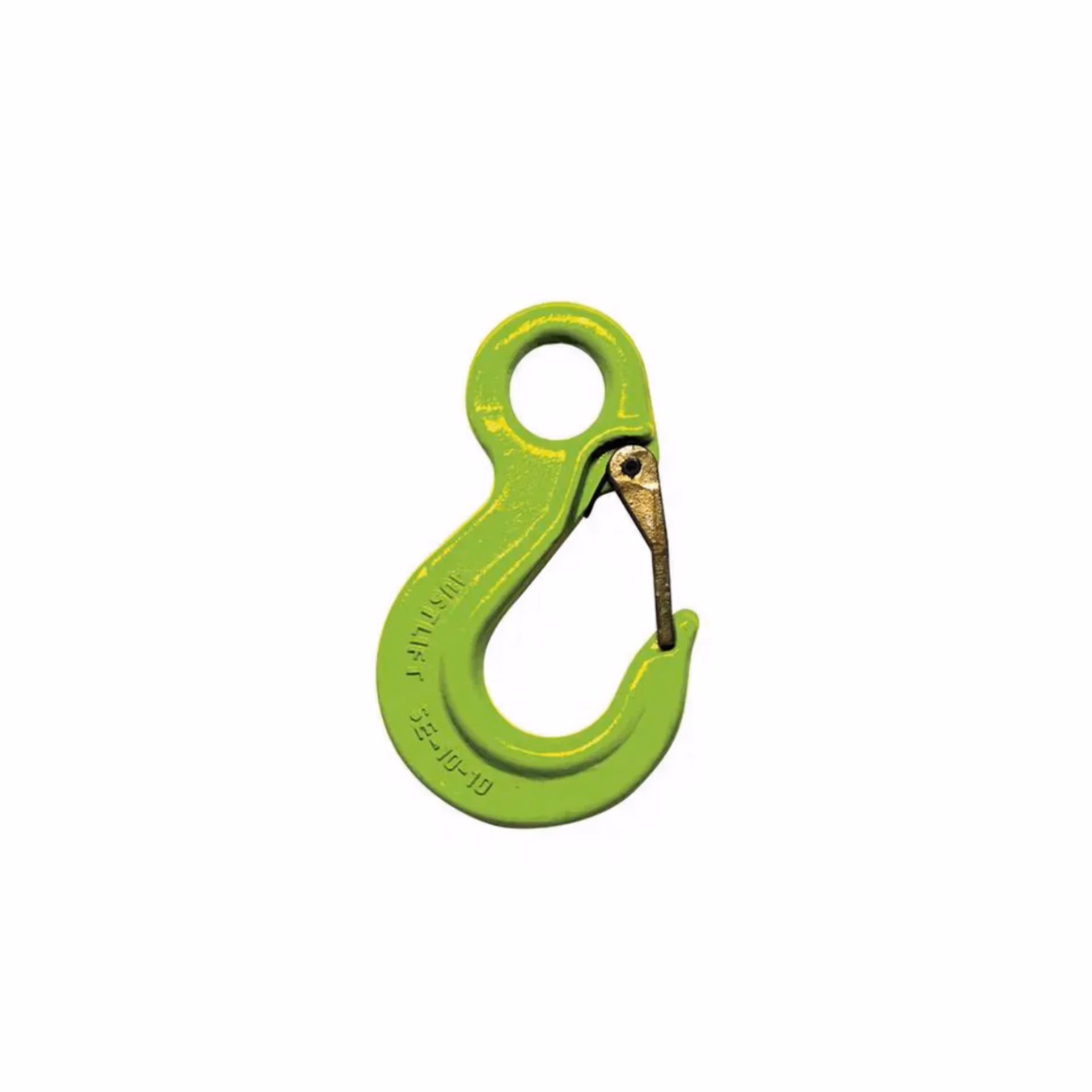 Lifting component for sling applications with eye and latch design for fast setup. Designed for secure lifting operations, made from grade 100 alloy steel, built for heavy-duty lifting.