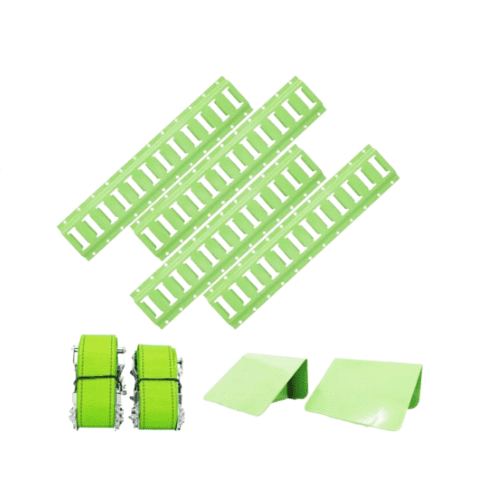 This wheel chock kit is suitable for restraining wheels of a vehicle, ATV, race car, lawn mower or more. These fluorescent webbed straps with e-fittings are designed to fit into e-track anchor slots of the wheel chock and adjust according to the wheel size, making it convenient to a variety of wheeled equipment. These innovative, high-visibility straps make working in the night easier, as they strap over the tire that is wedged between the anchors of the bolted on wheel chocks.